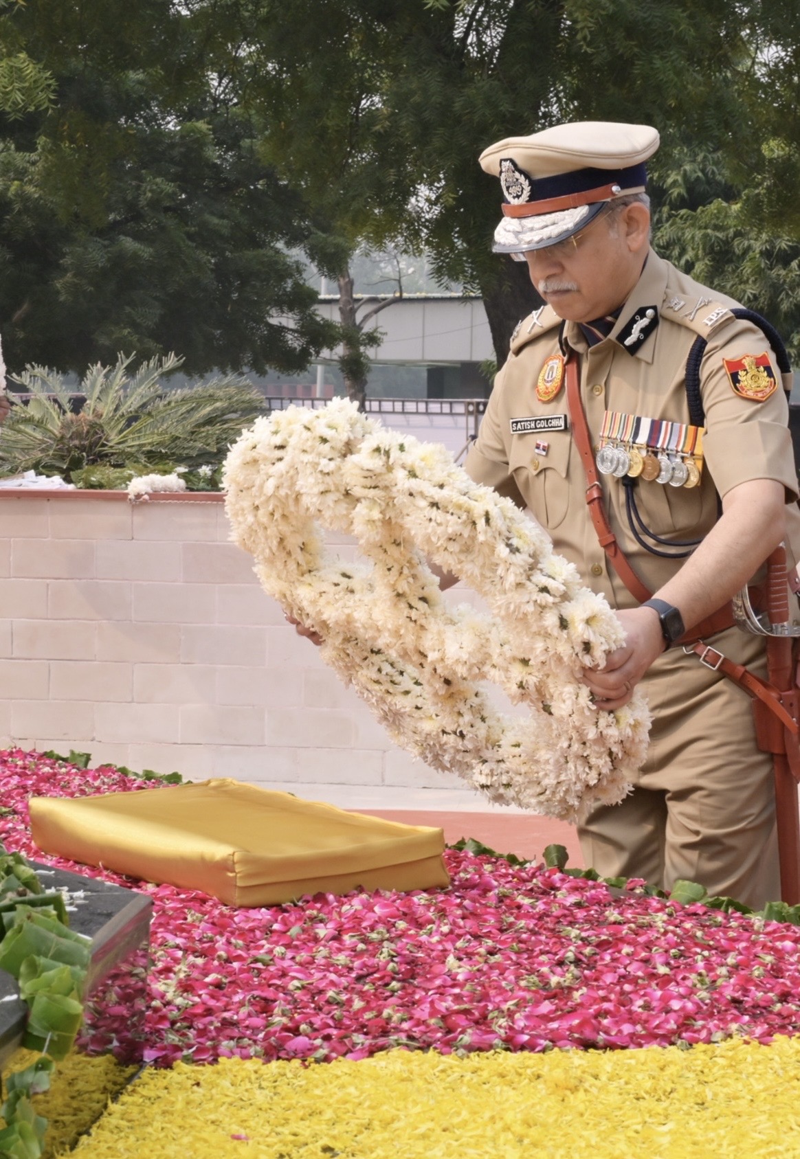 दिल्ली: पुलिस स्मृति दिवस के अवसर पर कर्तव्य की वेदी पर सर्वोच्च बलिदान करने वाले समर्पित पुलिस कर्मियों एवं अधिकारियों को दी गई भावपूर्ण श्रद्धांजलि । दिल्ली पुलिस आयुक्त सतीश गोलछा ने किंग्सवे कैम्प स्थित पुलिस लाइन स्थित स्मृति स्थल पर रखी गई स्मृति पत्रिका पर पुष्पचक्र चढ़ाकर बलिदानी पुलिस कर्मियों को श्रद्धांजलि दी ।