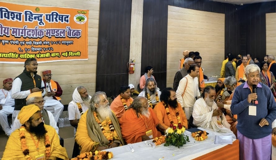 दिल्ली: मंदिरों के सरकारी अधिग्रहण, धर्मांतरण और बढ़ती मजहबी कट्टरता पर चिंतन के साथ प्रारंभ हुई विहिप के केन्द्रीय मार्ग दर्शक मण्डल की द्विदिवसीय बैठक। जिसमें देशभर से लगभग 300 संतों के शामिल होने के समाचार मिले हैं ।ज्योतिष पीठाधीश्वर जगद्गुरु शंकराचार्य पूज्य स्वामी वासुदेवानंद सरस्वती जी महाराज की अध्यक्षता में प्रारंभ हुए उद्घाटन सत्र को संबोधित करते हुए विहिप के अंतरराष्ट्रीय अध्यक्ष श्री आलोक कुमार जी ने हिंदू समाज के समक्ष चुनौतियों के बारे में बताते हुए पूज्य संतों से निम्नलिखित बिन्दुओ पर उनके द्वारा समाज के मार्गदर्शन का आग्रह किया: