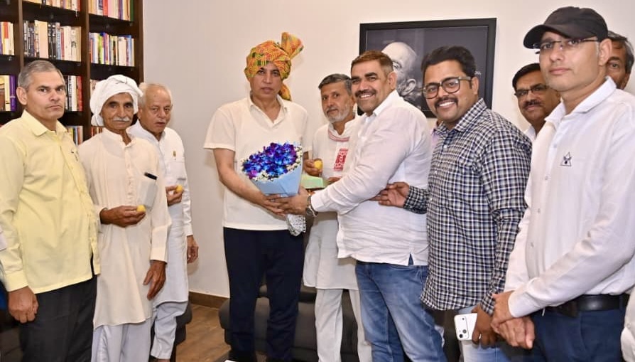 दिल्ली देहात के गांवों में विकास कार्य और हितों के लिए लगातार आवाज उठाने वाले कांग्रेस के शीर्षस्थ नेता राहुल गांधी और 31 मार्च को दिल्ली के नवनियुक्त उपराज्यपाल तरणजीत सिंह संधू के समक्ष ग्राम वासियों के अधिकारों व समस्याओं की बात रखने पर दिल्ली देहात मोर्चा के प्रतिनिधिमंडल ने आज दिल्ली प्रदेश कांग्रेस कमेटी के अध्यक्ष देवेन्द्र यादव से मिलकर उनको पगड़ी बांधकर सम्मानित किया और मोर्चा के अध्यक्ष राजीव यादव ने उनका धन्यवाद भी किया।