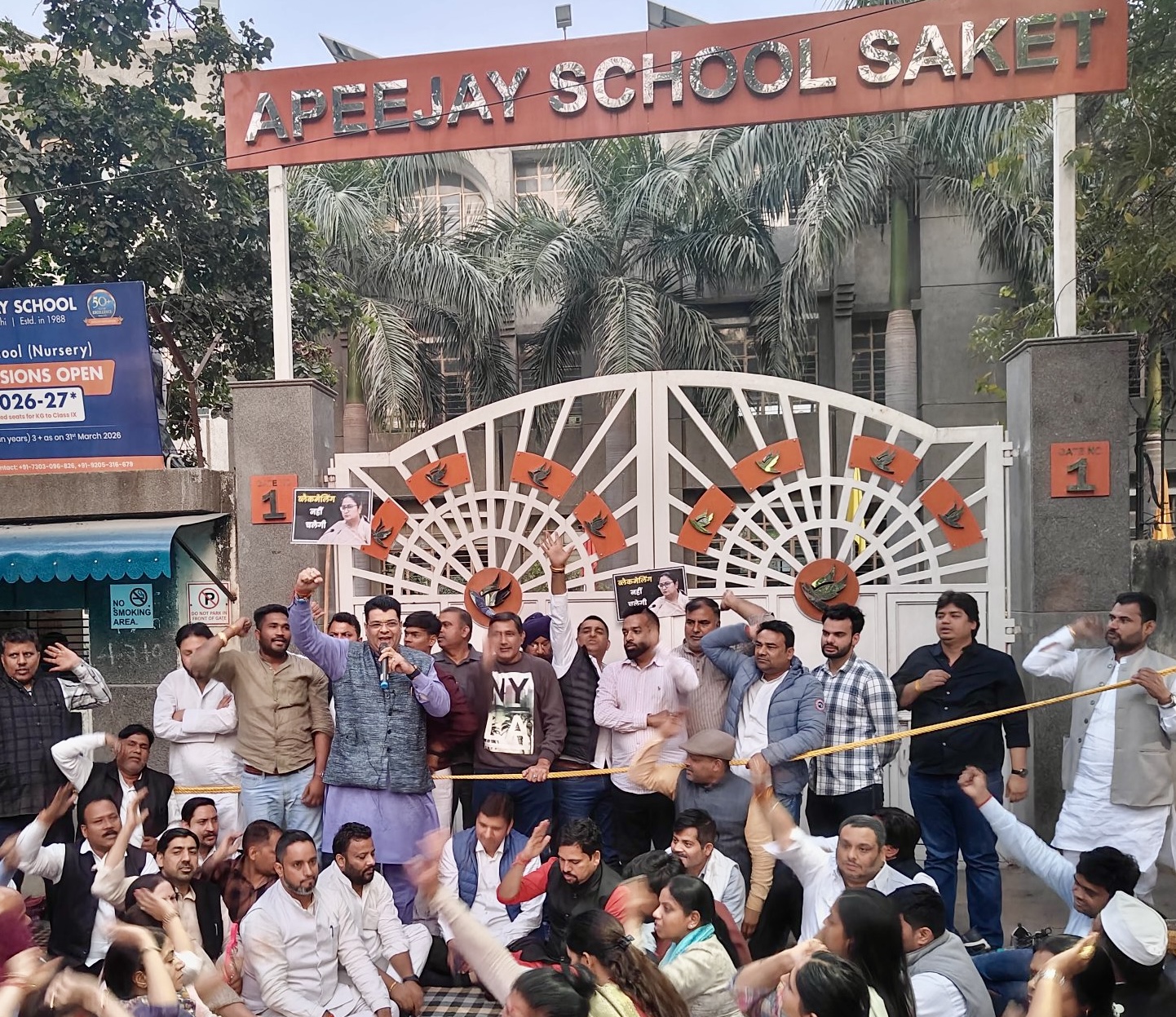 दिल्ली: देश की राजधानी में कई प्राइवेट स्कूलों द्वारा बोर्ड के बच्चों के एडमिट कार्ड रोके जा रहे हैं खुली ब्लैकमेलिंग चल रही है।एमसीडी के नेता प्रतिपक्ष अंकुश नारंग ने APEEJAY Schoo साकेत के गेट पर प्रदर्शन कर रहे अभिभावकों को संबोधित करते हुए साधा निशाना । बताया जा रहा है कि पैरेंट्स से लाखों रुपये की मांग की जा रही है। APEEJAY School में शिक्षा विभाग की अधिकारी की मौजूदगी के बावजूद कोई कार्रवाई नहीं। नेता प्रतिपक्ष का कहना है कि दिल्ली मुख्यमंत्री, मंत्री, शिक्षा विभाग सब प्राइवेट स्कूल के साथ खड़े हैं।